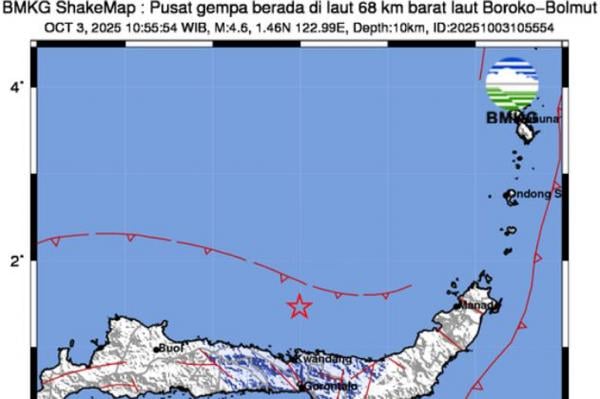 Pada hari Jumat, 3 Oktober 2025, gempa bumi mengguncang wilayah Boroko, Kabupaten Bolaang Mongondow Utara, Sulawesi Utara. Dengan magnitudo 4,6, gempa tersebut terjadi pukul 10.55 WIB dan dipastikan tidak menimbulkan potensi tsunami oleh Badan Meteorologi, Klimatologi, dan Geofisika.